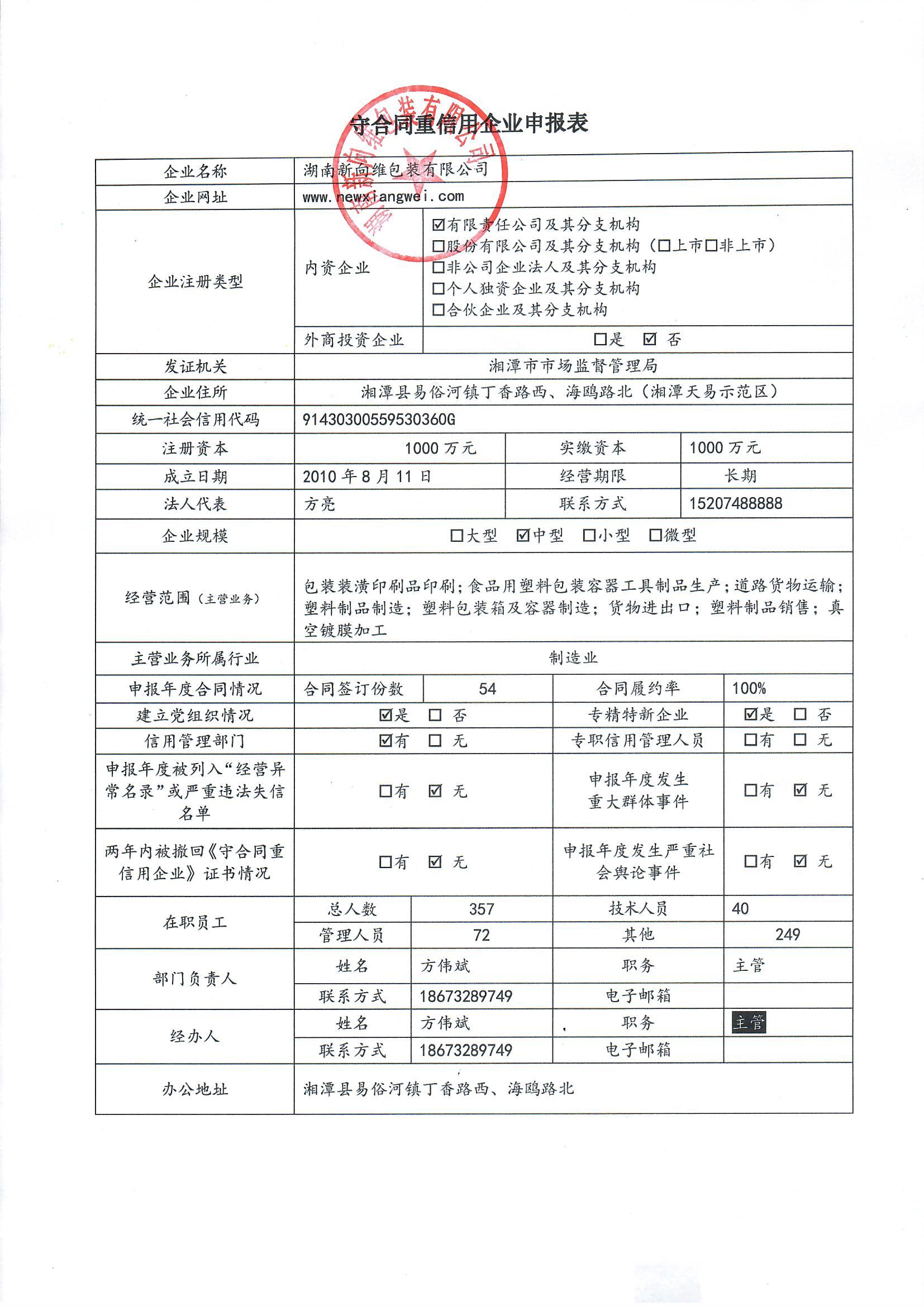 本企業(yè)根據(jù)《湘潭市守合同重信用企業(yè)申報(bào)規(guī)定》等編制 2024 年度企業(yè)信用報(bào)告書,并保證本報(bào)告書內(nèi)容真實(shí)、準(zhǔn)確、完整。