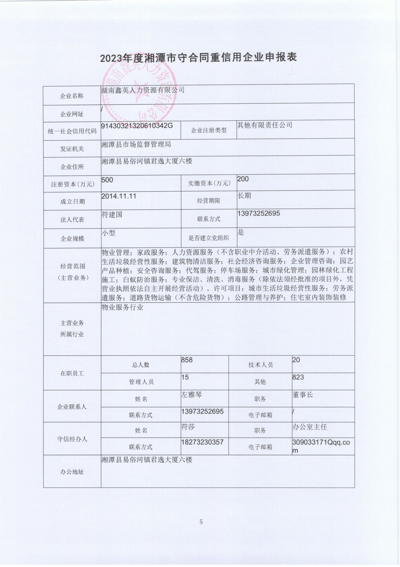本企業(yè)根據(jù)《湘潭市守合同重信用企業(yè)申報規(guī)定》等編制 2023 年度企業(yè)信用報告書,并保證本報告書內(nèi)容真實(shí)、準(zhǔn)確、完整。