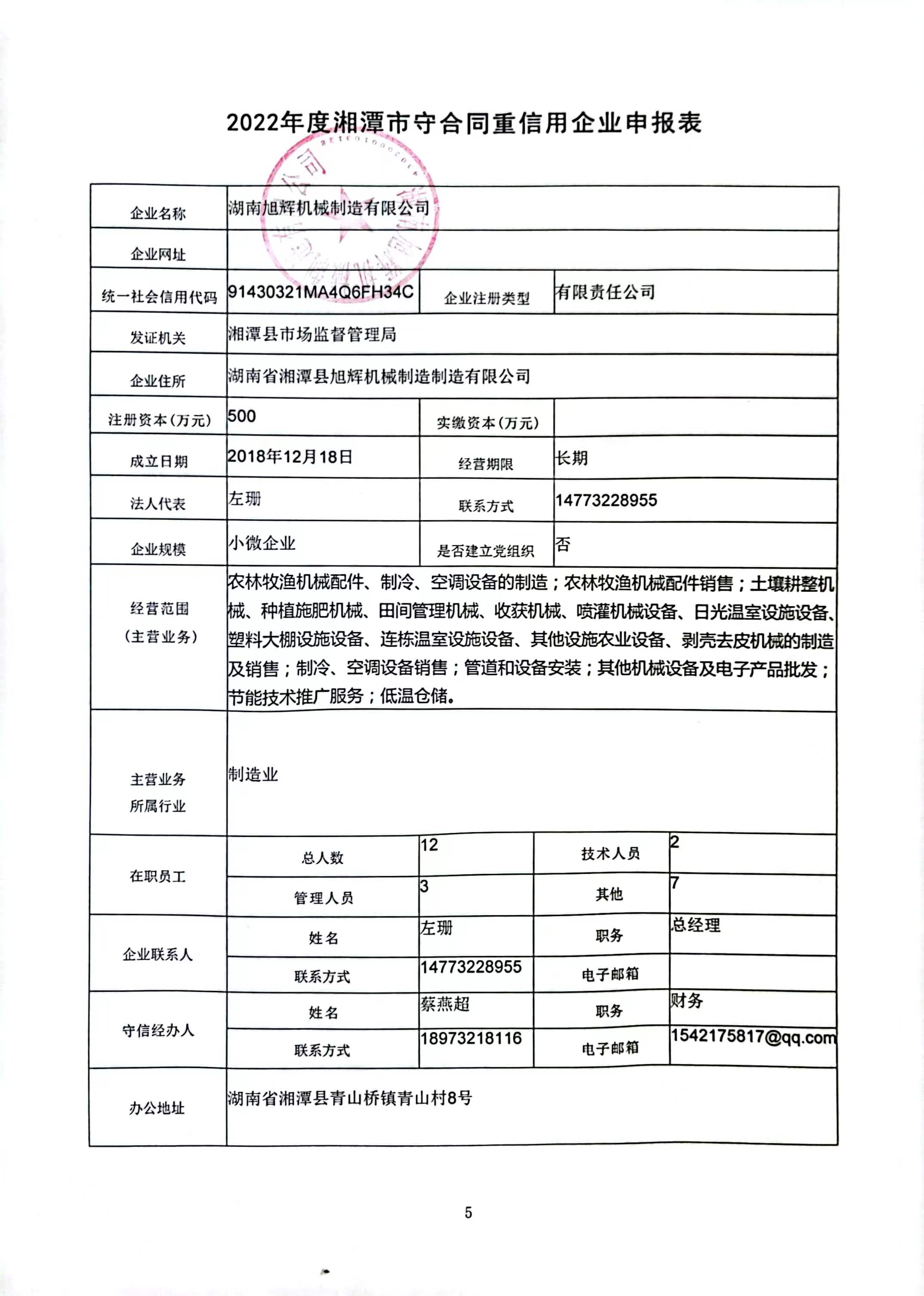 本企業(yè)根據(jù)《湘潭市守合同重信用企業(yè)申報規(guī)定》等編制 2022 年度企業(yè)信用報告書,并保證本報告書內(nèi)容真實、準(zhǔn)確、完整。