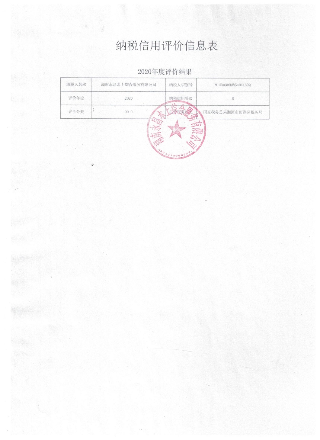 企業(yè)納稅信用等級報(bào)告: