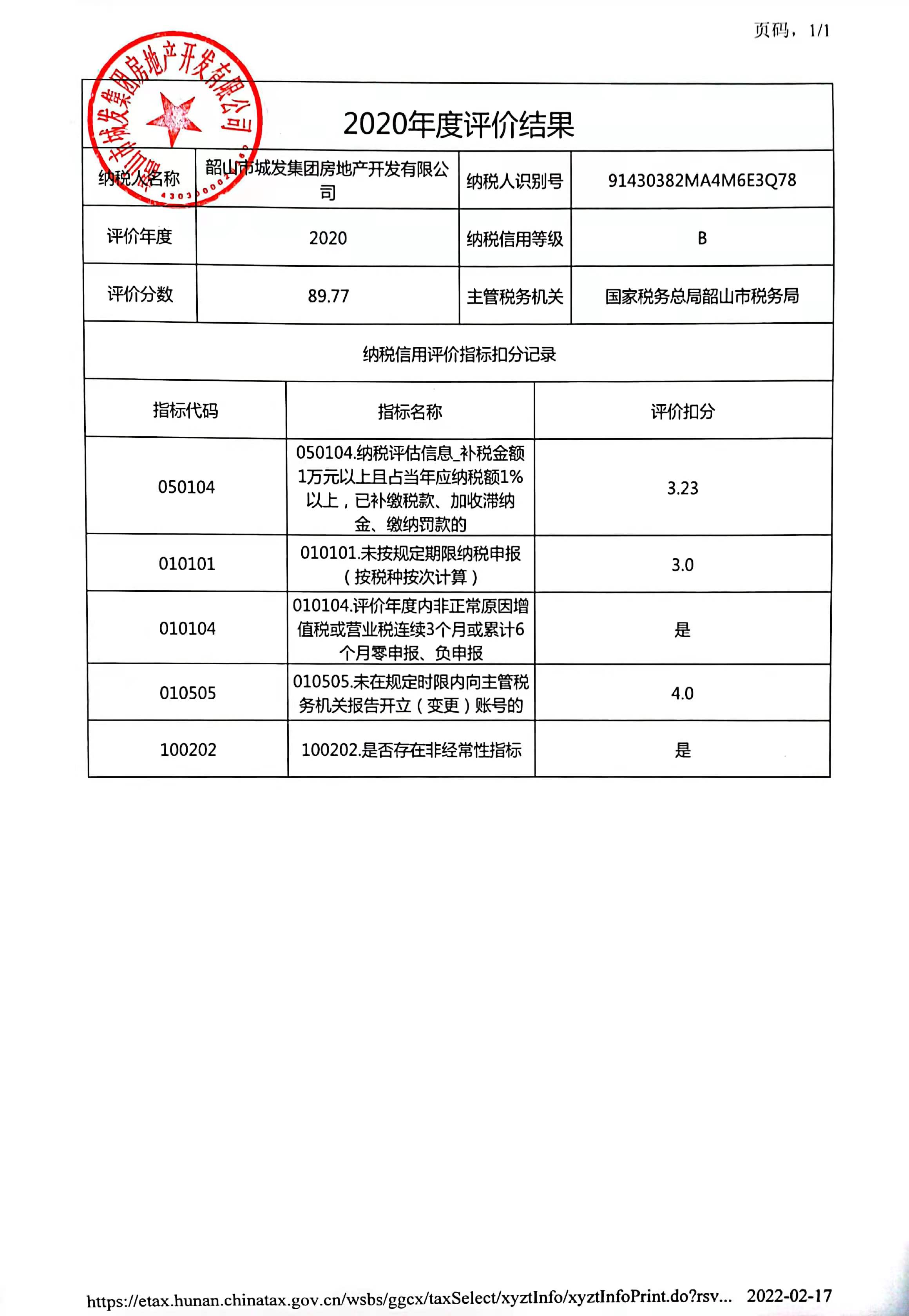 企業(yè)納稅信用等級報告: